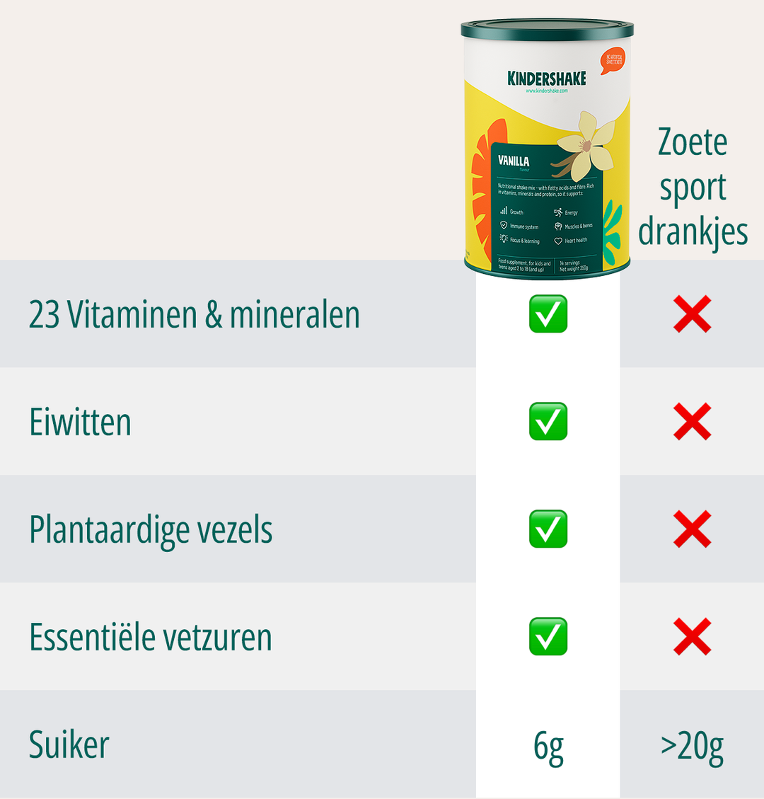 Met Kindershake weet je zeker dat ze extra vitaminen en andere voedingsstoffen binnen krijgen. Een lekker drankje waar ze écht van genieten Zonder strijd, zonder gedoe.